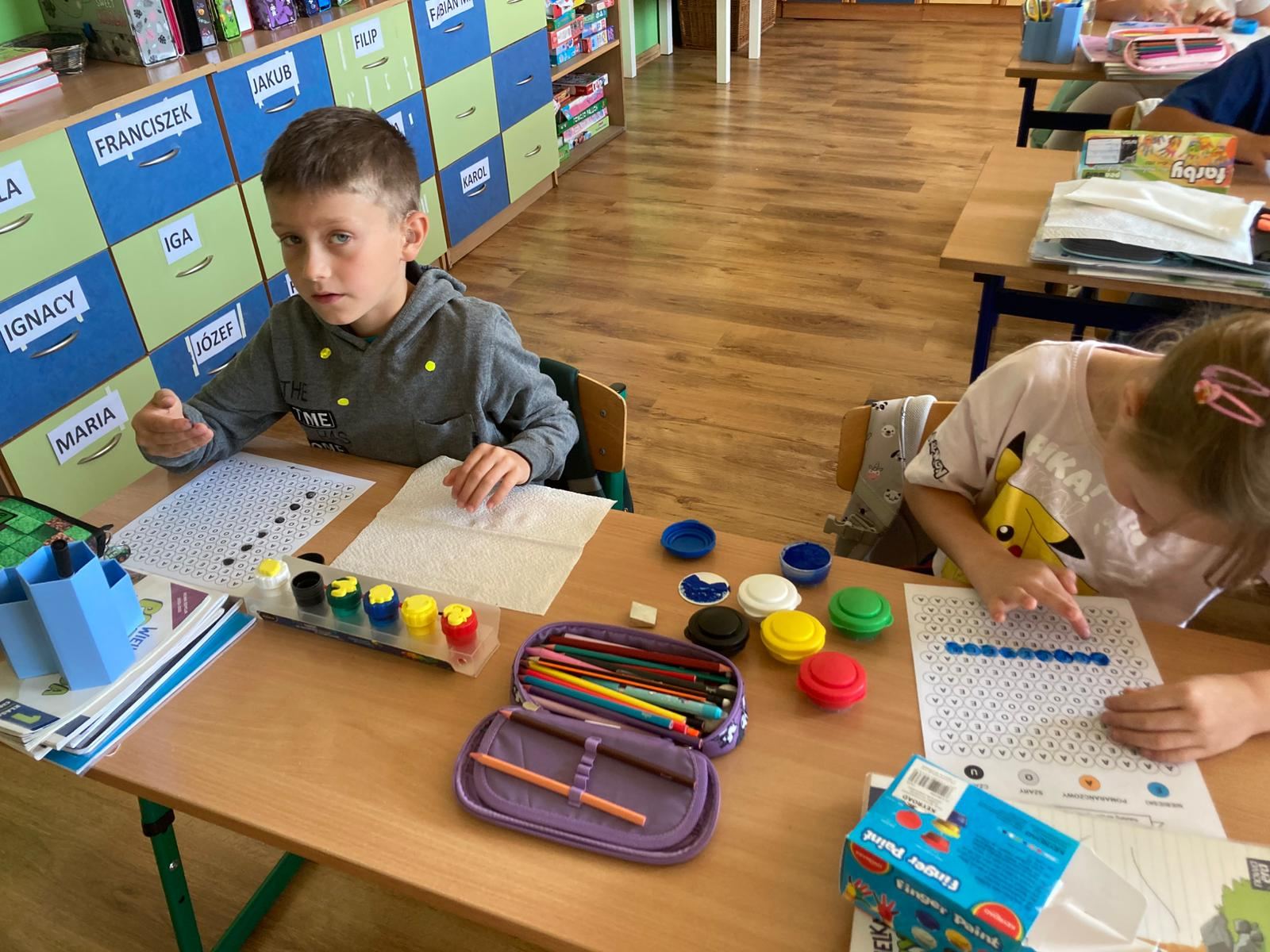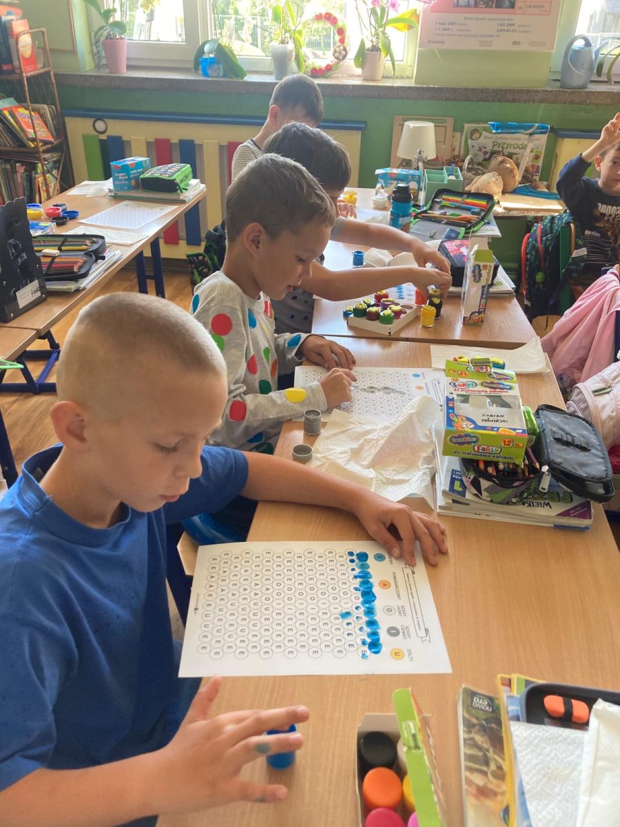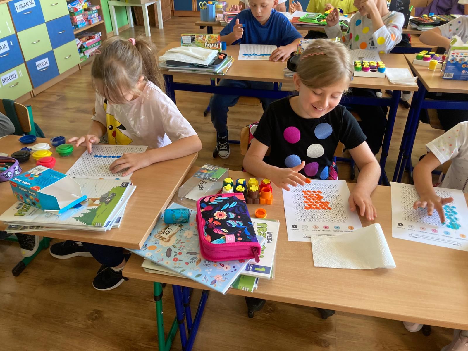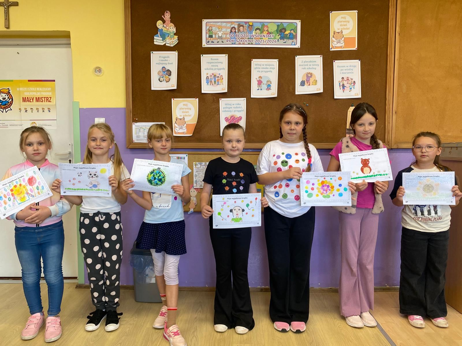 Dnia 15 września najmłodsi w naszej szkole obchodzili Międzynarodowy Dzień Kropki czyli International Dot Day. Święto to, swój początek zawdzięcza książce Petera H. Reynoldsa,pt. „The Dot”, w której poznajemy historię Vashti, dziewczynki, która nie wierzyła w swoje możliwości plastyczne, ale dzięki malutkiej kropce i nauczycielce plastyki uwierzyła w siebie. Dzień Kropki to święto inności, kreatywności i rozwijania ukrytego potencjału, bo przecież każdy ma talent, tylko nie zawsze umiemy go odkryć, potrzebujemy kogoś kto ten talent w nas zauważy. Tego dnia dzieci oglądały prezentacje multimedialne o kropce, rozwiązywały zadania z kropką, wykonywały prace plastyczne, grały w gry planszowe a najważniejsze dobrze się przy tym bawiąc !