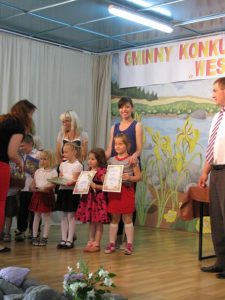 W dniu 14.06.2013r. w Gminnym Ośrodku Kultury odbył się Gminny Konkurs Piosenki Dziecięcej ,,Wesołe nutki”. Uczniowie kl. ,,0″ w zespole ,,Jagódki” pod opieką wychowawcy p. Moniki Cieciórskiej zajęły II miejsce. Spośród solistów wyróżnienie otrzymały Anna Wolska i Maria Słomińska. GRATULUJEMY!!!