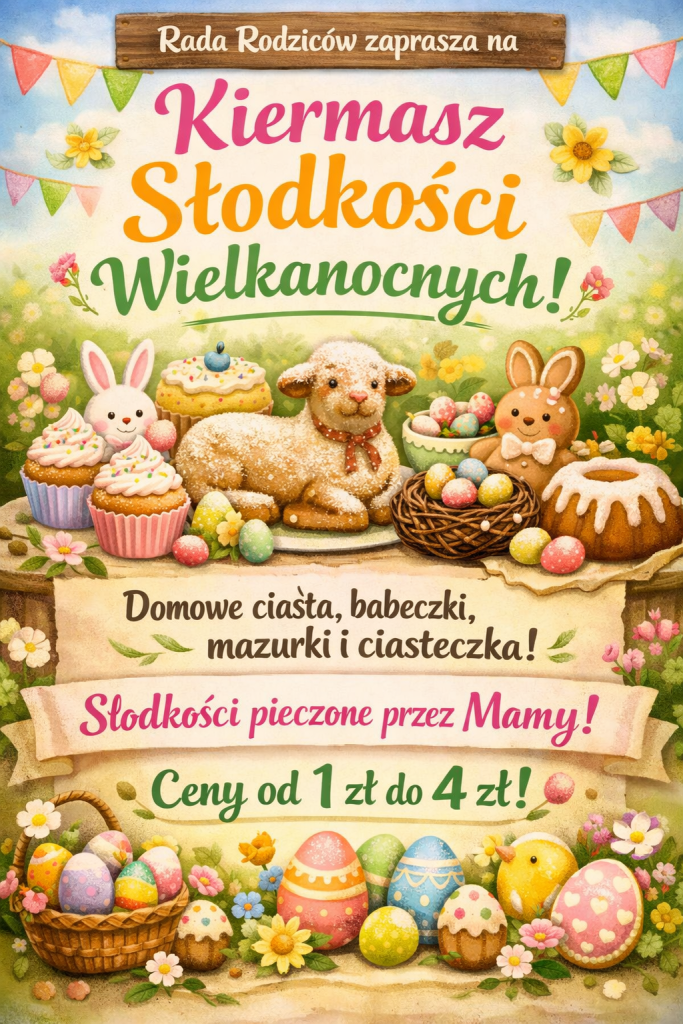 KIERMASZ SŁODKOŚCI WIELKANOCNYCH Napisano 26 marca 202626 marca 2026 przez Anna Wyświetleń: 65 Udostępnij innym przez: