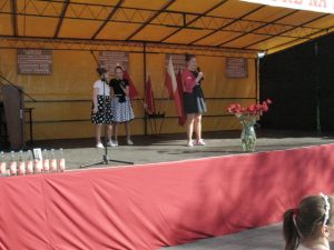 Uczniowie kl. III: Jan Sadowski, Miłosz Tamiła, Wiktoria Pusz, Agnieszka Bieżuńska, Kinga Malinowska, Kamila Gumienik, Magdalena Kosakowska wykonali piosenki ,,Czerwony autobus” oraz ,,Dwudziestolatki”