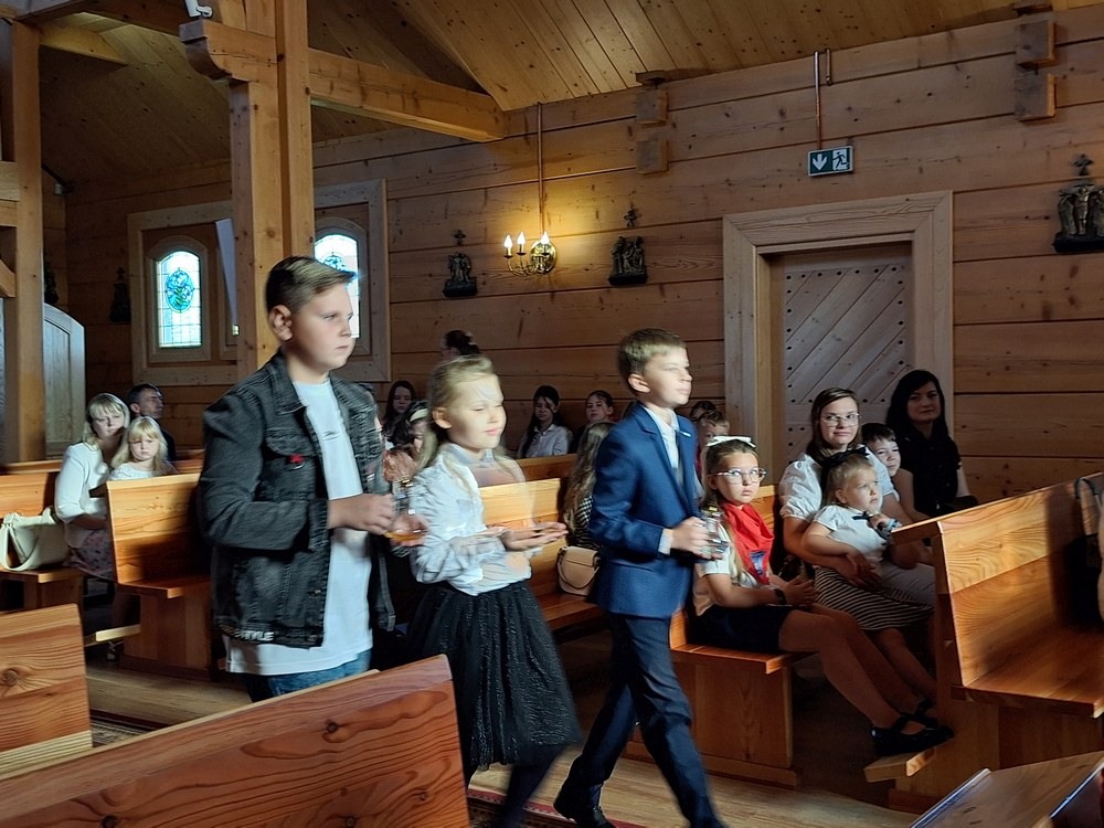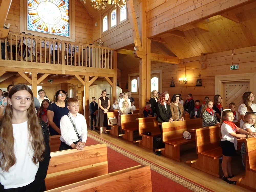 W pierwszy poniedziałek września uczniowie, rodzice i nauczyciele modlili się o Boże błogosławieństwo w nowym roku szkolnym i katechetycznym. Mszy Świętej o godz. 7.30 odprawionej w tej intencji przewodniczył jej Proboszcz parafii Mszano ks. Sławomir Witkowski. Szczególnymi bohaterami uroczystości były dzieci z klas pierwszych. Procesję z darami do ołtarza przygotowała katechetka p. Marzena Kopczyńska. Oprawę liturgiczną w formie czytań i śpiewów przygotowała Schola Dziecięco-Młodzieżowa z Małk. Dzięki nauce o Panu Bogu lepiej rozumiemy, skąd się wziął ten piękny, cudowny świat i rozumiemy, jak mamy żyć, obdarzając siebie miłością, dobrocią, przyjaźniami, więzami koleżeńskimi. Tymi słowami karmi nas zawsze w postaci homilii ks. Sławomir Witkowski – nasz proboszcz.