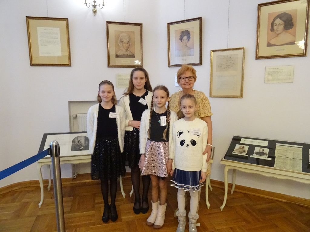 W dniu 1 marca 2023 r. odbył się XXIII Wojewódzki Konkurs Recytatorski Poezji i Prozy Poświęconej F. Chopinowi i Muzyce, który tradycyjnie odbywa się w Ośrodku Chopinowskim w Szafarni, dla upamiętnienia urodzin Fryderyka Chopina. Do recytatorskich zmagań stanęli uczniowie szkół podstawowych z województwa kujawsko-pomorskiego. W konkursie recytatorskim naszą szkołę, parafię Mszano i Gminną Bibliotekę Publiczną– filia w Małkach reprezentowały uczennice w składzie: Aleksandra Karbowska z klasy III, Ewa Karbowska z klasy IV, Lena i Natalia Karbowskie z klasy VI oraz Magdalena Klonowska z klasy VIII. Dziewczynki do występu przygotowywały się z pomocą swoich opiekunów/rodziców. Wiadomości o Fryderyku Chopinie Aleksandra zdobyła na lekcji u p. Marii Jakubowskiej. Ewa, Lena, Natalia i Magda swoją wiedzę o Frycku rozszerzyły na lekcjach muzyki u p. Beaty Klonowskiej. Uczennice za recytację wierszy w kategorii kl. I-III i IV- VI nie zdobyły czołowych miejsc i wyróżnień. W kategorii kl. 7-8 nie było miejsc, tylko wyróżnienia. Za udział w konkursie otrzymały książkę i dyplom, degustowały się pysznym tortem. W restauracji serwowano pyszną kawę ,,Chopinówkę”. Podczas pobytu w Szafarni na żywo brzmiały utwory Chopina. Była to prawdziwa uczta dla ucha.