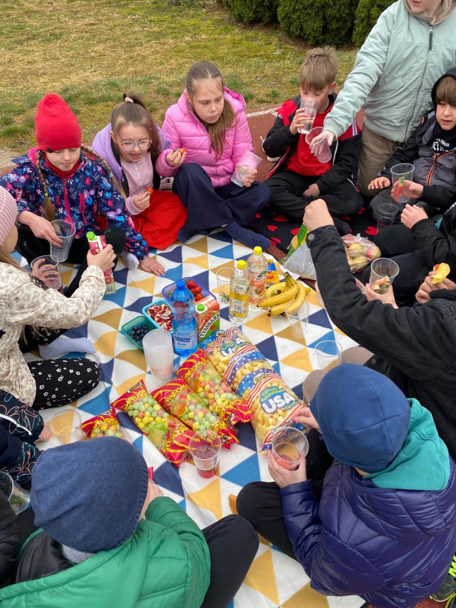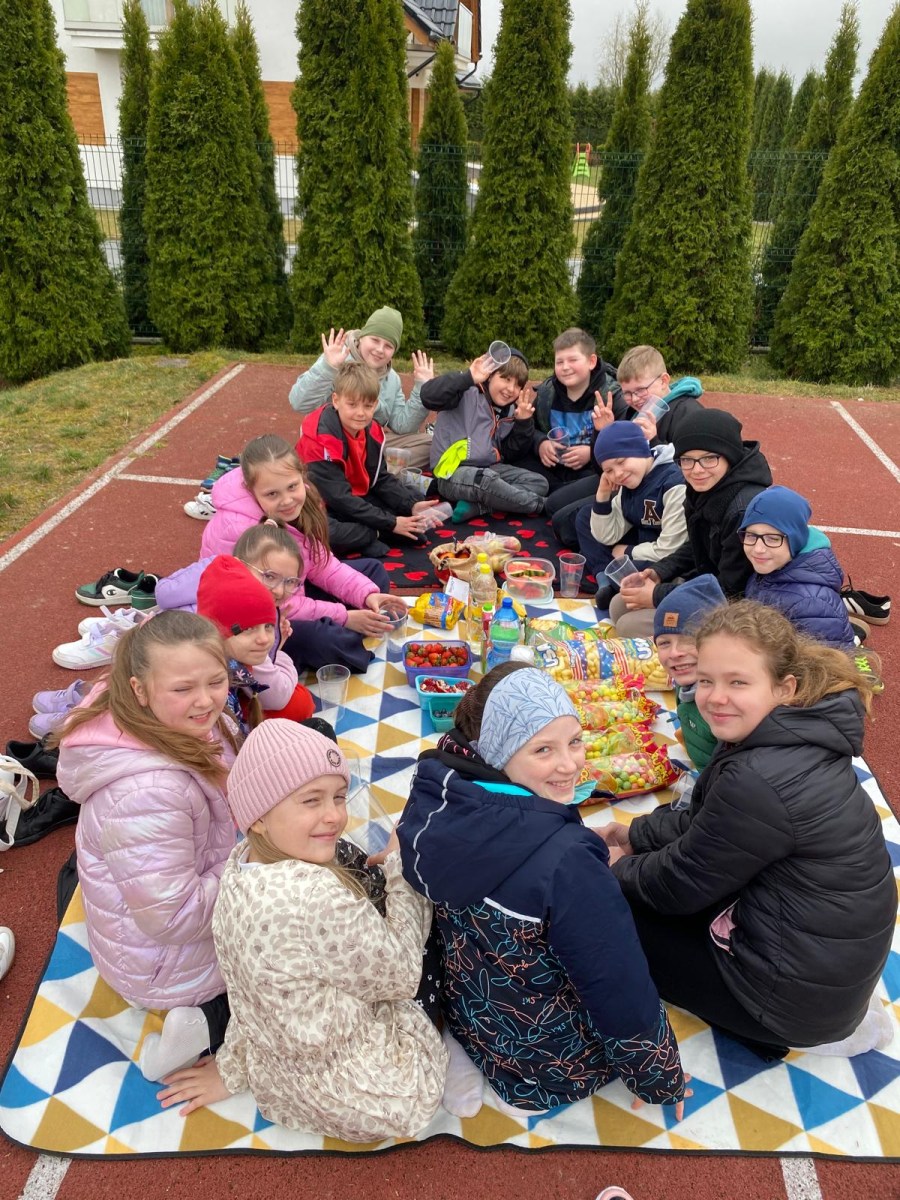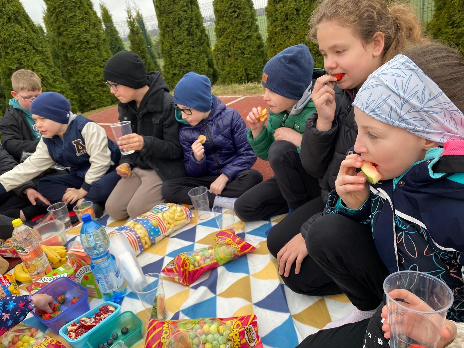 wychowawczynią M. Jakubowską urządzili na boisku szkolnym piknik klasowy.
