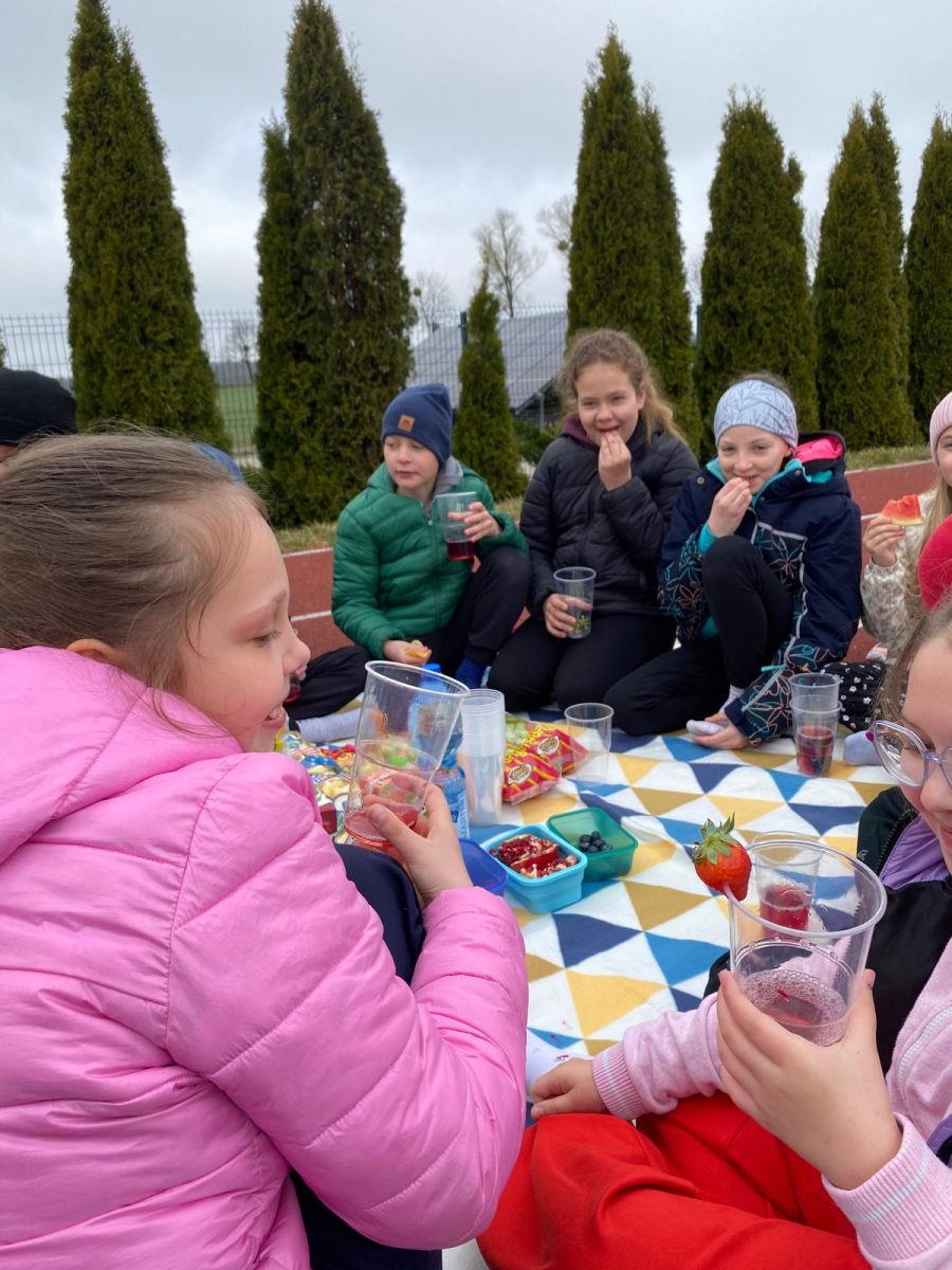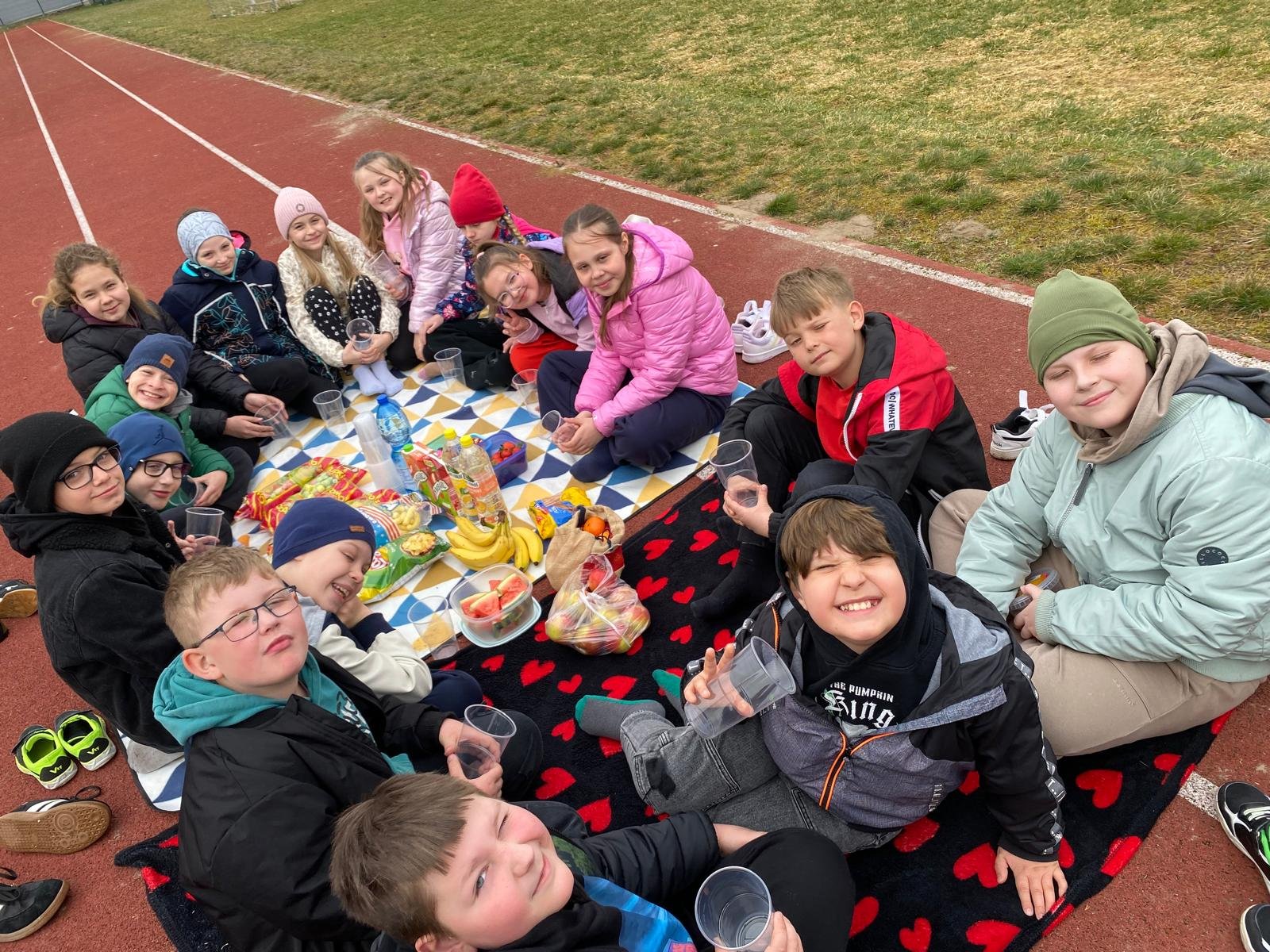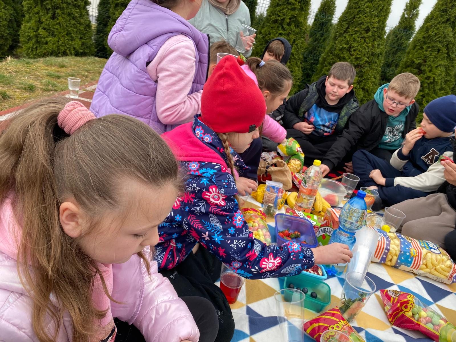 wychowawczynią M. Jakubowską urządzili na boisku szkolnym piknik klasowy.