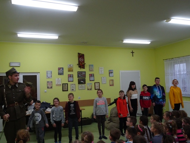 Pod koniec stycznia 2020 r. naszą szkołę odwiedziła grupa artystyczna Rekonstrukto, która zaprezentowała zebranym widzom pokaz historyczny pod tytułem: „Wrzesień ‘39”, pod hasłem „ o tym jak wybuchła II wojna światowa, a zniknęła II Rzeczpospolita”. Podczas pokazu artyści omówili i zaprezentowali: sytuację międzynarodową II Rzeczpospolitej, etos żołnierza i ułana w społeczeństwie polskim, polski mundur wojskowy, ekwipunek i wyposażenie używane podczas kampanii wrześniowej, bezpieczne repliki broni, rekonstrukcje z udziałem publiczności, technikę wojskową, łączność i zaopatrzenie. Zaprezentowano także musztrę i sprzęt bojowy. Po zakończonym pokazie chętni mogli osobiście obejrzeć repliki broni, sprawdzić jak ciężki był to sprzęt, przymierzyć mundur żołnierski, mogli także zadawać pytania prowadzącym, by pogłębić swoją wiedzę historyczną. Na zakończenie pokazu uczniowie ćwiczyli musztrę, sprawdzając, kto nadaje się do wojska. Wszyscy dobrze się bawili i na pewno znaleźli coś dla siebie. Była to wesoła, żywa lekcja historii. Koordynatorem zorganizowania pokazu historycznego w szkole była p. Beata Klonowska. Takie lekcje stanowią dowód, iż historia wcale nie musi być nudna, lecz ciekawa i pasjonująca. Więcej zdjęć w albumie.