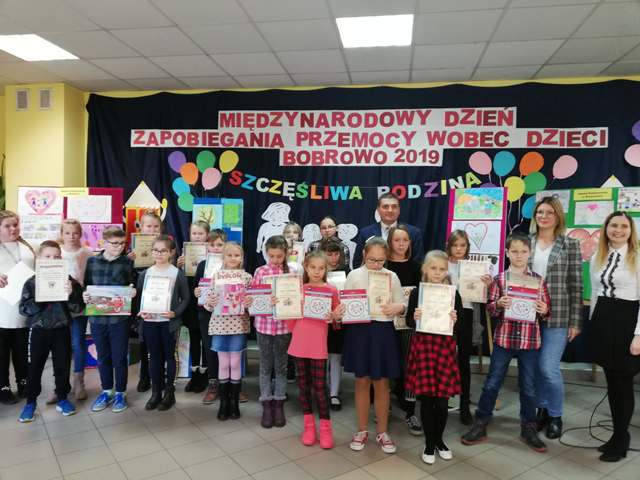 W listopadzie,  uczniowie naszej szkoły zostali zaproszeni na rozstrzygnięcie Gminnego Konkursu ,,Moja szczęśliwa rodzina” do Szkoły Podstawowej w Bobrowie. W czasie uroczystości Wójt Gminy Bobrowo pan Paweł Klonowski wręczył dyplomy i nagrody zwycięzcom. Naszą szkołę reprezentowało 12 uczniów: Monika Łęgowska kl.0, Ilona Trzebiatowska kl. 0, Aleksandra Karbowska kl.0, Martyna Nowakowska kl., Zofia Szostakowska kl.1, Filip Jakubowski kl. 2, Weronika Tamiła kl. 5, Dorota Kosakowska kl. 5, Zuzanna Jaszak kl. 5, Zuzanna Malinowska kl. , Piotr Tamiła kl. 6, Vanessa Konera kl. 8.