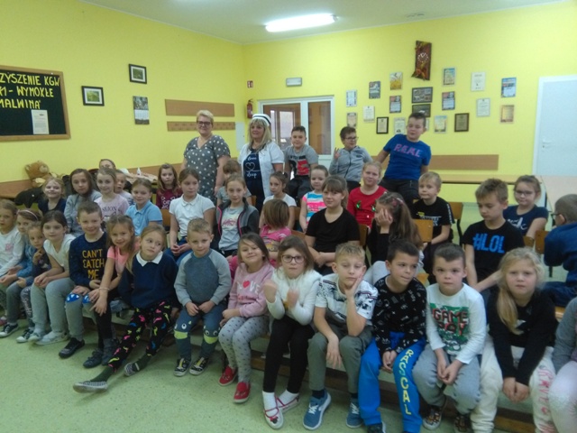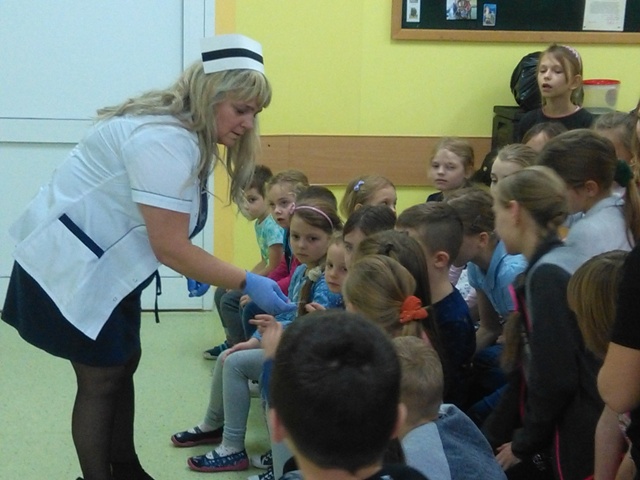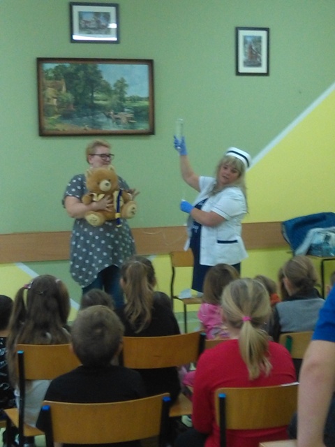 Dnia 20 listopada najmłodsi uczniowie, spotkali się z  pielęgniarką p. Krystyną Ćwiklińską. Uczniowie mieli okazję wysłuchać prelekcji na temat pracy związanej z zawodem pielęgniarki, zdrowego odżywiania oraz prawidłowej higieny.  Pani pielęgniarka  pokazała jakie narzędzia wykorzystuje w swojej pracy a nawet podłączyła kroplówkę  szkolnemu misiowi.  Za zorganizowanie spotkania dziękujemy pani Katarzynie Wiśniewskiej.