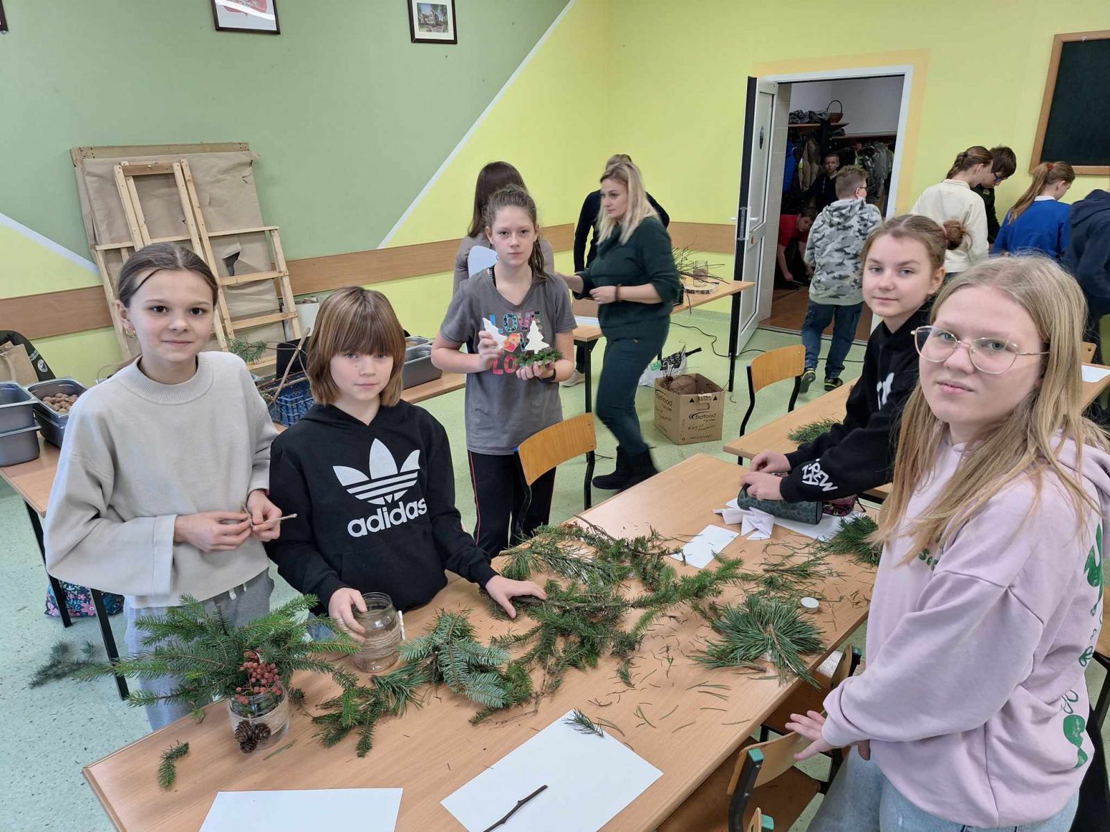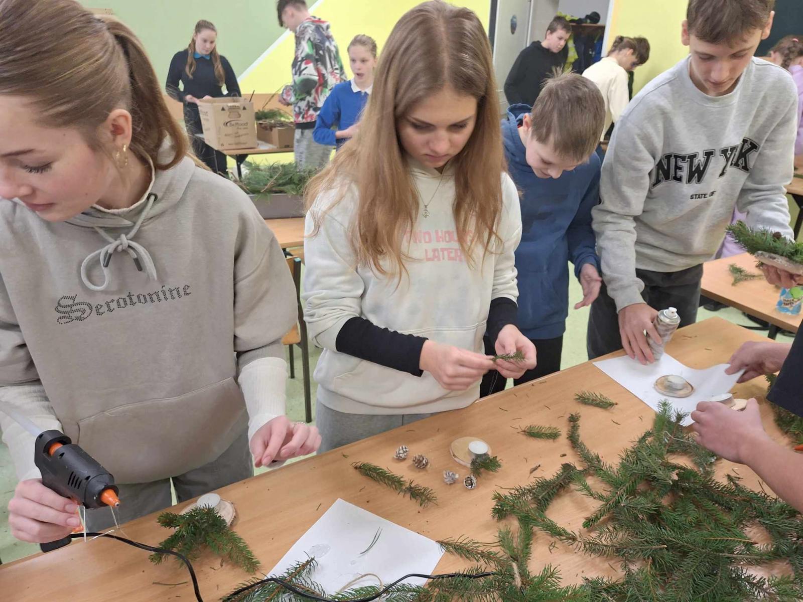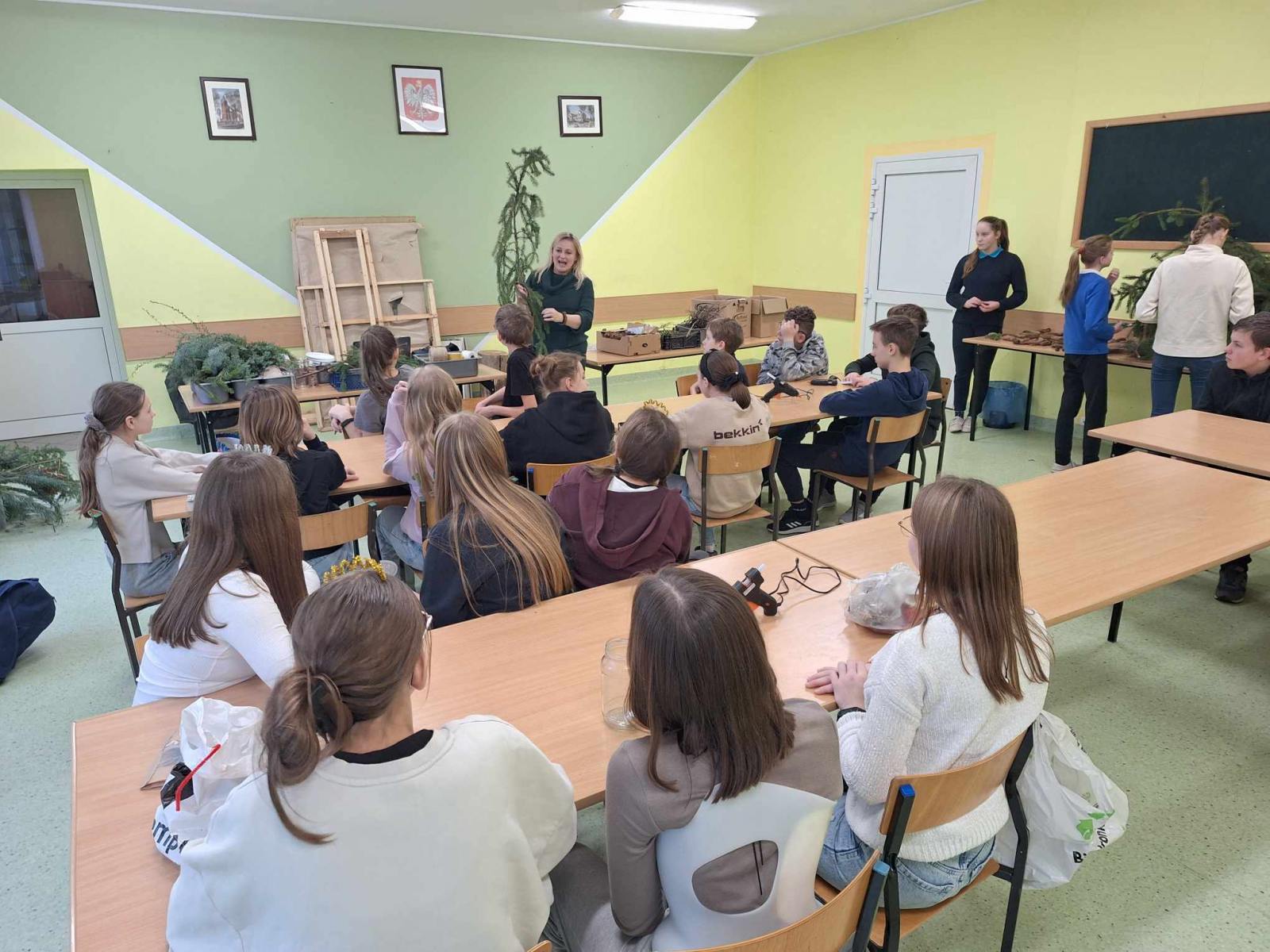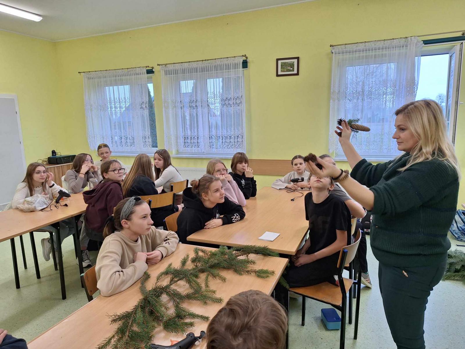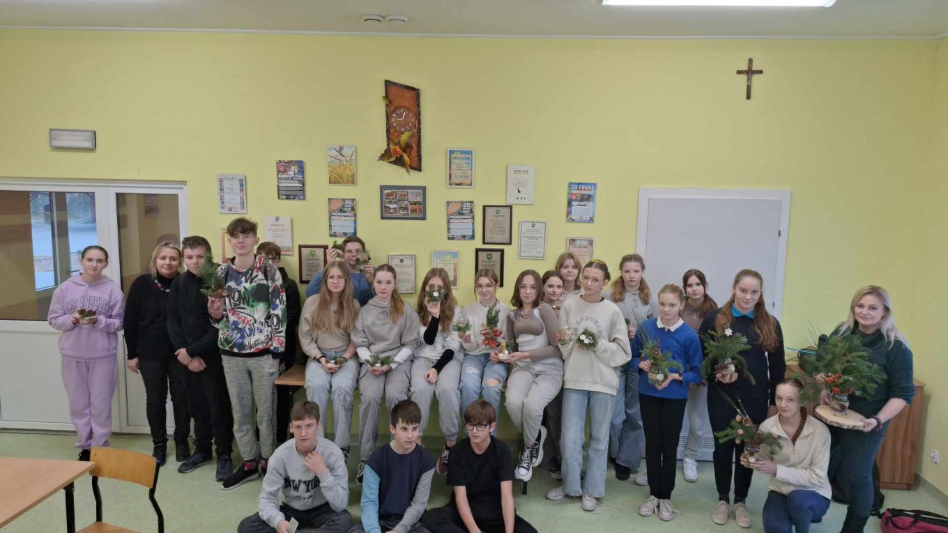 Święta Bożego Narodzenia tuż tuż ……. Za chwilę będziemy wybierali drzewka na choinkę. W wielu domach choinka to choinka. Świerk, sosna czy jodła – wszystko jedno, ważne, żeby była zielona, kształtna i gęsta, no i żeby pięknie pachniała. Klasa 6,7, 8 za sprawą udziału w ciekawych zajęciach przyrodniczo-świątecznych pt: „Jaki Iglak na choinkę”odświeżyła informacje dotyczące rozpoznawania drzew iglastych. Na koniec uczestnik warsztatów wykonał piękną, pełną uroku dekorację, która wykonana samodzielnie stanowić będzie unikalną ozdobę. Stroiki wykonane zostały w większości z naturalnych leśnych materiałów: plastrów drewna, szyszek, gałązek drzew iglastych omówionych na zajęciach, świec, koralików i śniegu w sprayu. Dziękujemy p. Marcie Roman z Brodnickiego Parku Krajobrazowego za pamięć o naszej szkole i iście przyrodniczo- świąteczne szaleństwo. Warsztaty zostały zrealizowane dzięki współpracy opiekuna LOP – p. Beaty Klonowskiej z pracownikami BPK i serdeczności naszej p. Dyrektor.