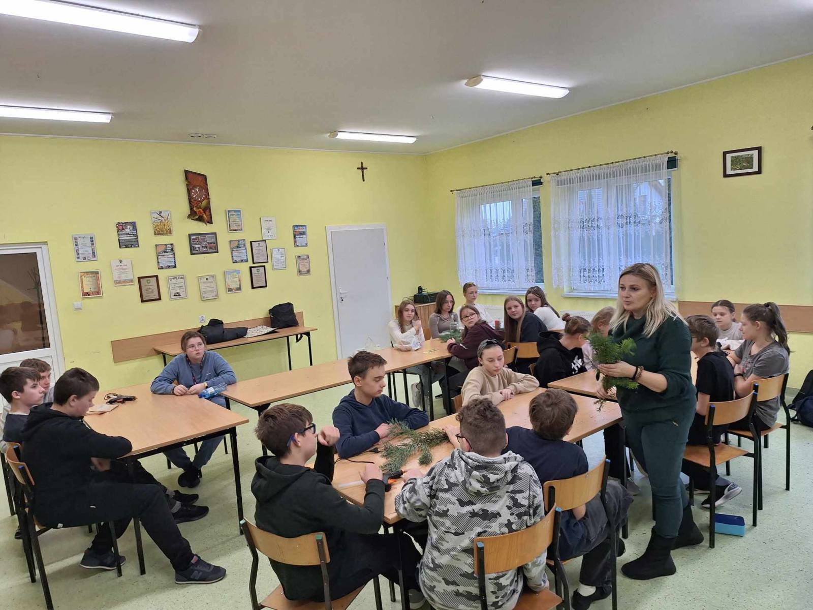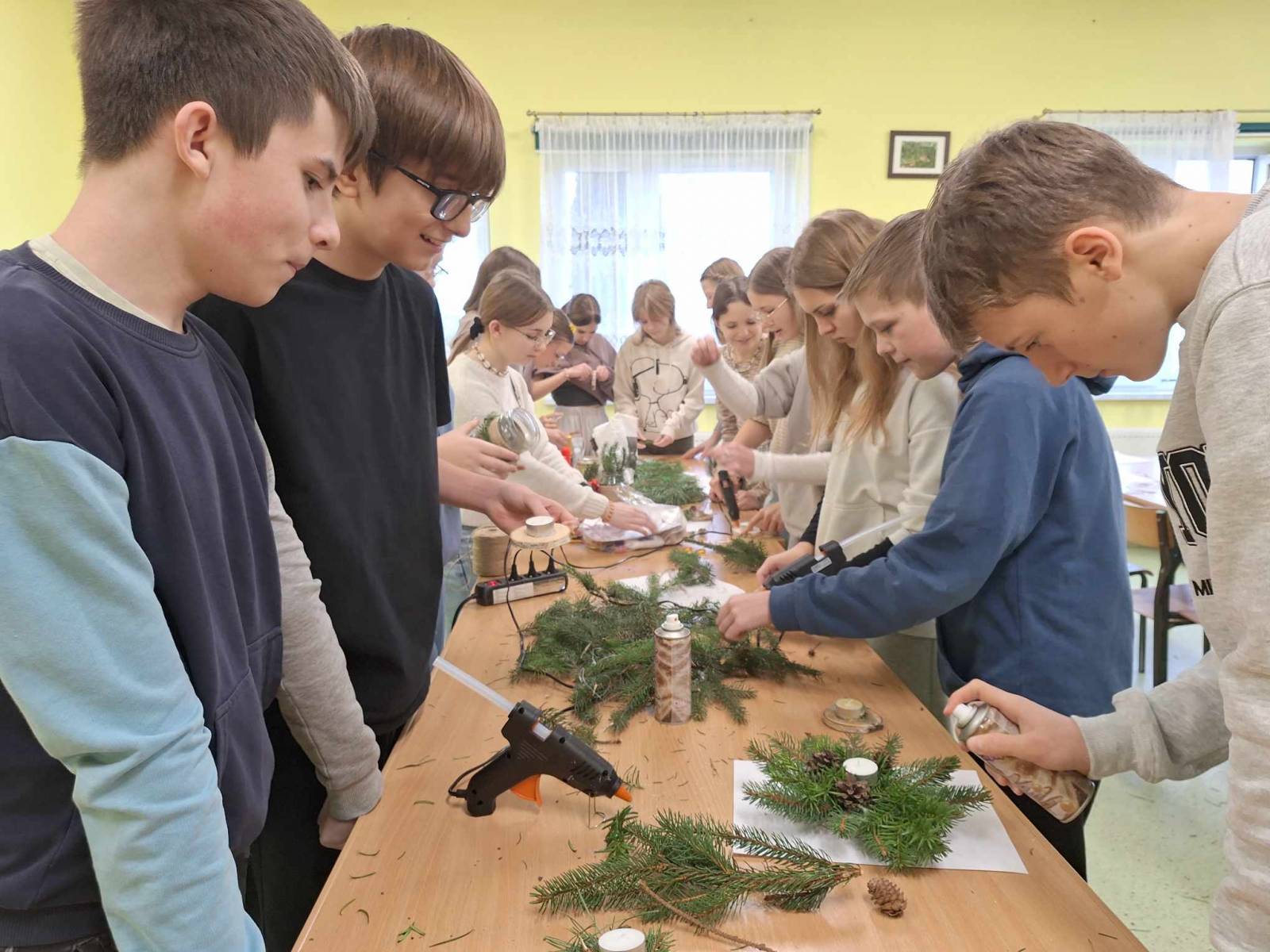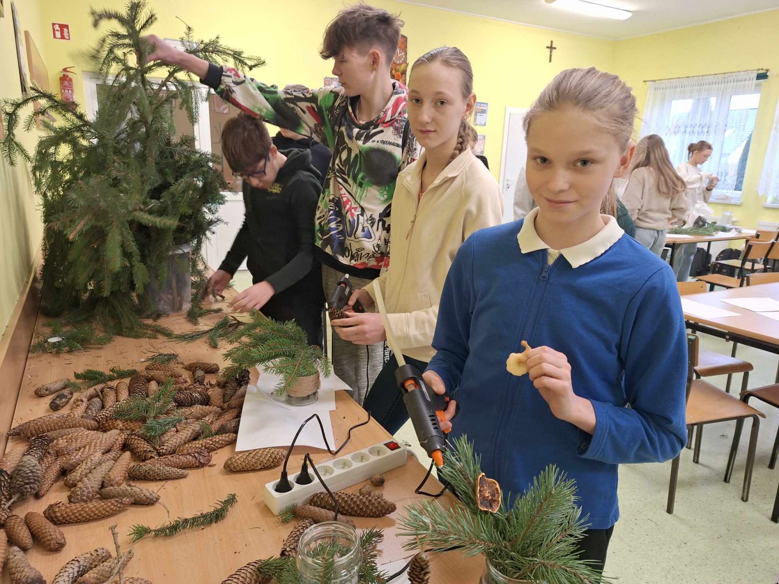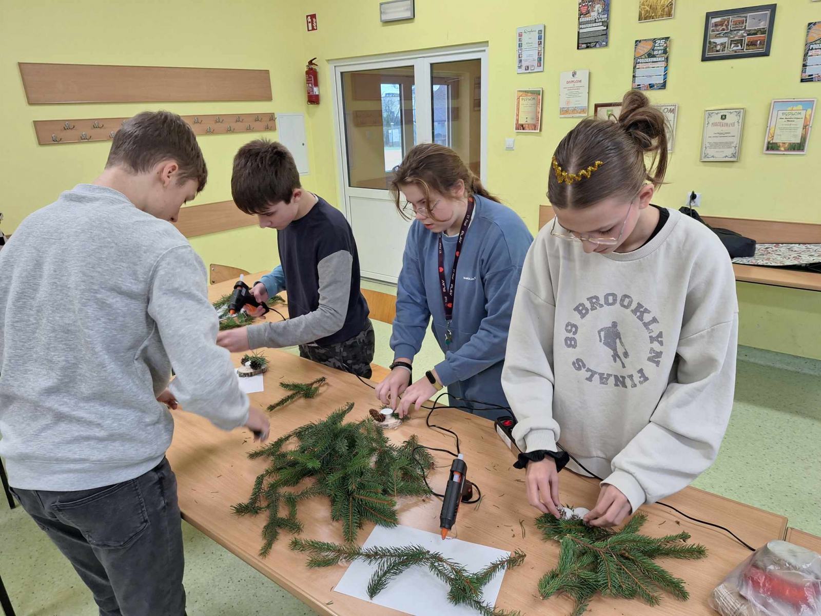 Święta Bożego Narodzenia tuż tuż ……. Za chwilę będziemy wybierali drzewka na choinkę. W wielu domach choinka to choinka. Świerk, sosna czy jodła – wszystko jedno, ważne, żeby była zielona, kształtna i gęsta, no i żeby pięknie pachniała. Klasa 6,7, 8 za sprawą udziału w ciekawych zajęciach przyrodniczo-świątecznych pt: „Jaki Iglak na choinkę”odświeżyła informacje dotyczące rozpoznawania drzew iglastych. Na koniec uczestnik warsztatów wykonał piękną, pełną uroku dekorację, która wykonana samodzielnie stanowić będzie unikalną ozdobę. Stroiki wykonane zostały w większości z naturalnych leśnych materiałów: plastrów drewna, szyszek, gałązek drzew iglastych omówionych na zajęciach, świec, koralików i śniegu w sprayu. Dziękujemy p. Marcie Roman z Brodnickiego Parku Krajobrazowego za pamięć o naszej szkole i iście przyrodniczo- świąteczne szaleństwo. Warsztaty zostały zrealizowane dzięki współpracy opiekuna LOP – p. Beaty Klonowskiej z pracownikami BPK i serdeczności naszej p. Dyrektor.