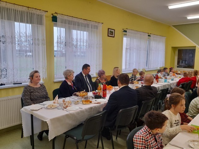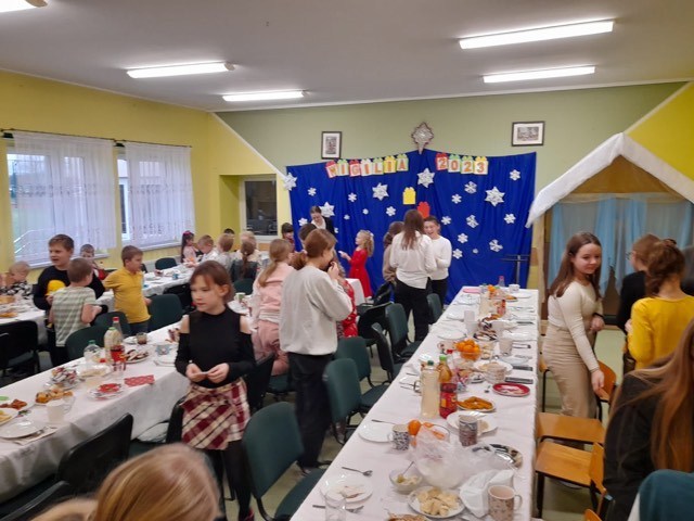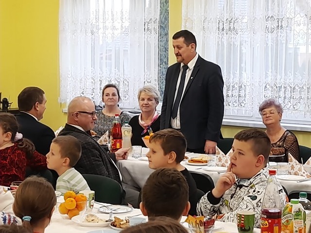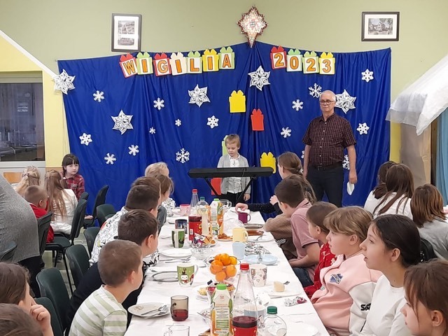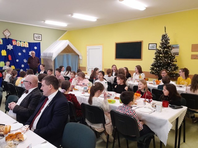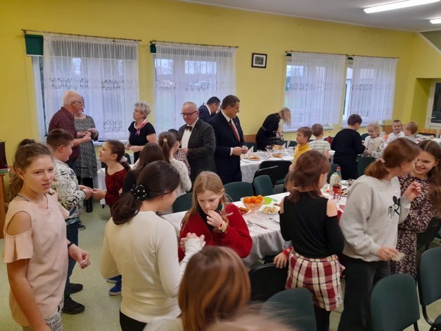 Święta Bożego Narodzenia to czas spędzony w gronie najbliższych, pełen ciepła, miłej atmosfery i serdecznych życzeń. 20 grudnia 2023 r. w szkole w Małkach odbyła się Wigilia uczestników zajęć świetlicy środowiskowej. Na spotkanie przybyli zaproszeni goście: Wójt Gminy Bobrowo Paweł Klonowski, Przewodniczący Rady Gminy Ryszard Włodarczyk, radna gminy Bobrowo Alina Prokopowicz, radny powiatowy Piotr Mazur, sołtysi  Mirosława Załęska, Natalia Łęgowska oraz Dyrektor Szkoły Podstawowej im. Dywizjonu 303 w Małkach Katarzyna Malinowska – Wituła. Spotkanie rozpoczął Ignacy Prokopowicz, który zagrał na keyboardzie kolędę, a potem uczniowie zgodnie z tradycję ją zaśpiewali.  Z kolei głos zabrał opiekun świetlicy Marek Piotrowski, który złożył wszystkim obecnym serdeczne życzenia świąteczne i noworoczne. Następnie do życzeń przyłączył się Wójt Gminy Bobrowo Paweł Klonowski i przekazał  prezenty dla świetlicy i uczniów związane z konkursem „Ratujemy kasztanowce”. Do  życzeń przyłączył się również  Przewodniczy Rady Gminy Bobrowo Ryszard Włodarczyk.  Potem zgodnie z tradycją wszyscy przełamali się opłatkiem i złożyli sobie życzenia. Następnie uczestnicy Wigilii  zasiedli do stołu przygotowanego przez Izabelę Gołembiewską, Annę Leśniewską, Katarzynę Nadolską.
