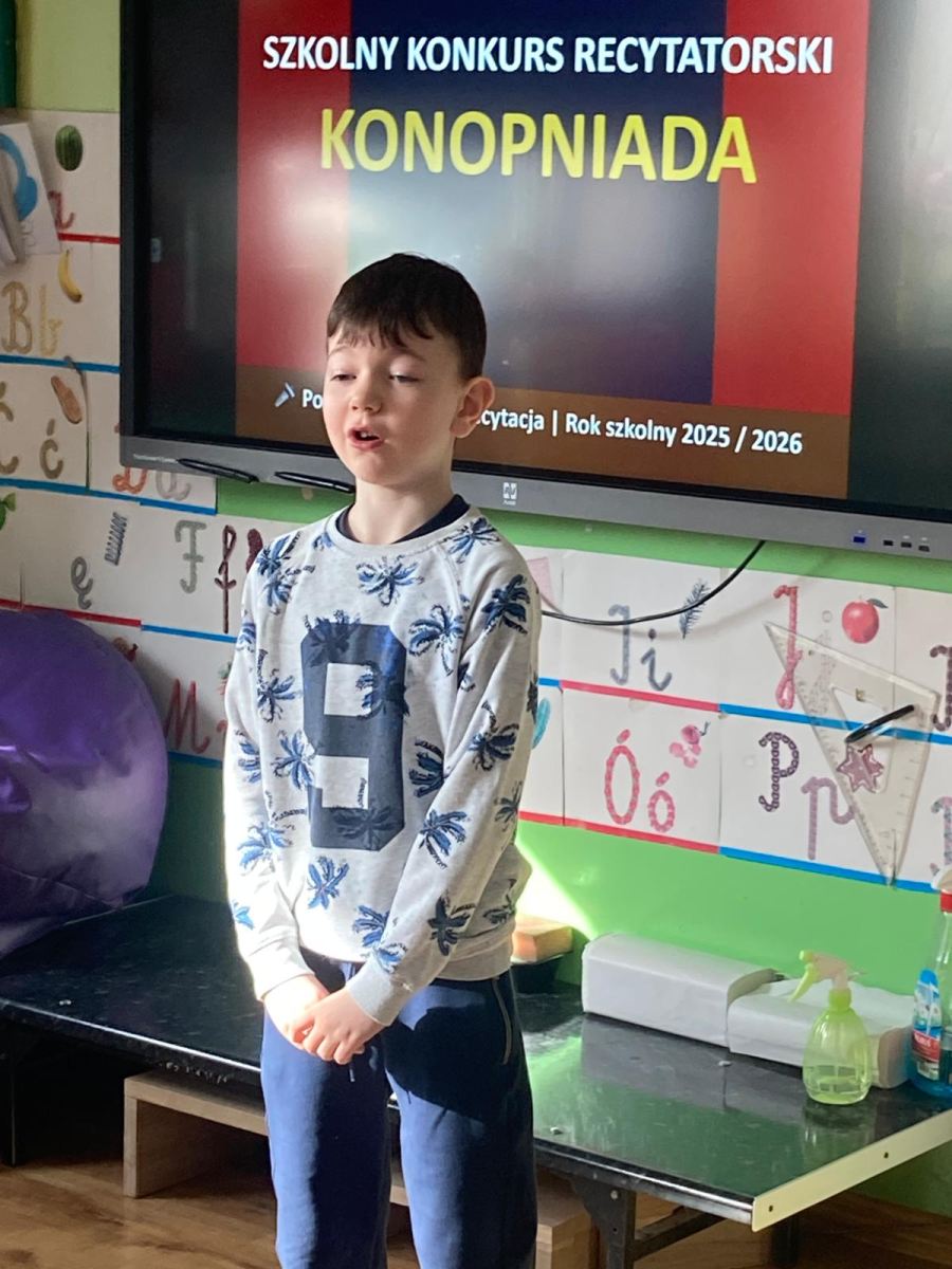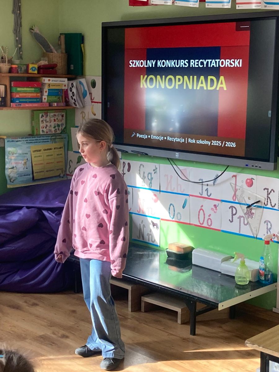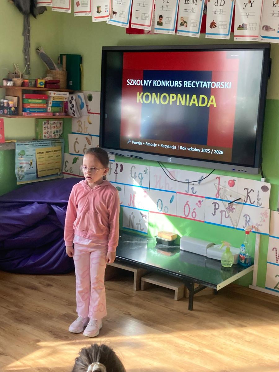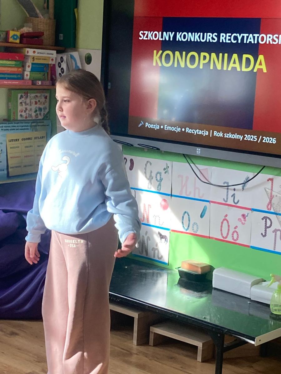 W naszej szkole odbył się XIV Szkolny Konkurs Recytatorski „Konopniada”, który na stałe wpisał się w kalendarz szkolnych wydarzeń. Konkurs skierowany był do najmłodszych uczniów i przeprowadzony został w dwóch kategoriach wiekowych: klasa 0 oraz klasy I–III.