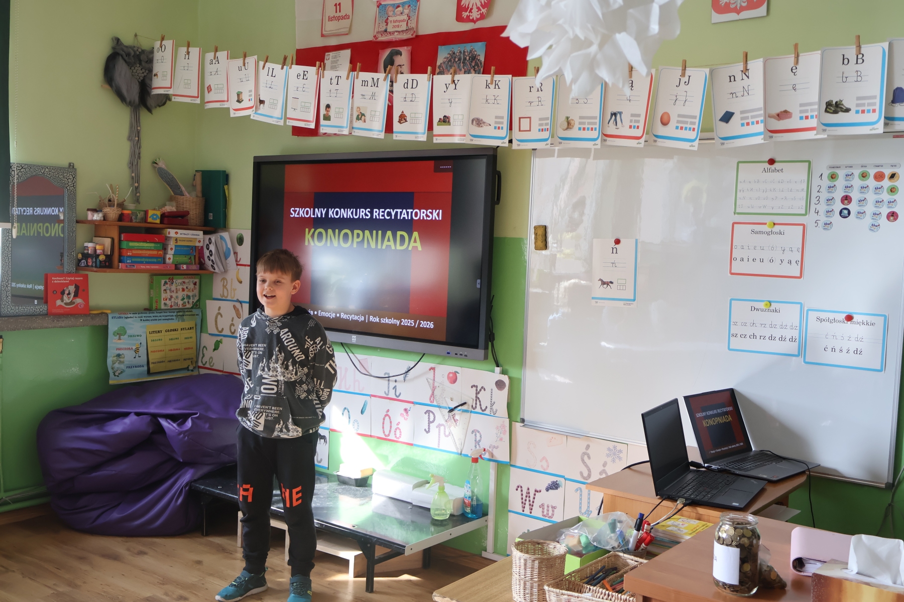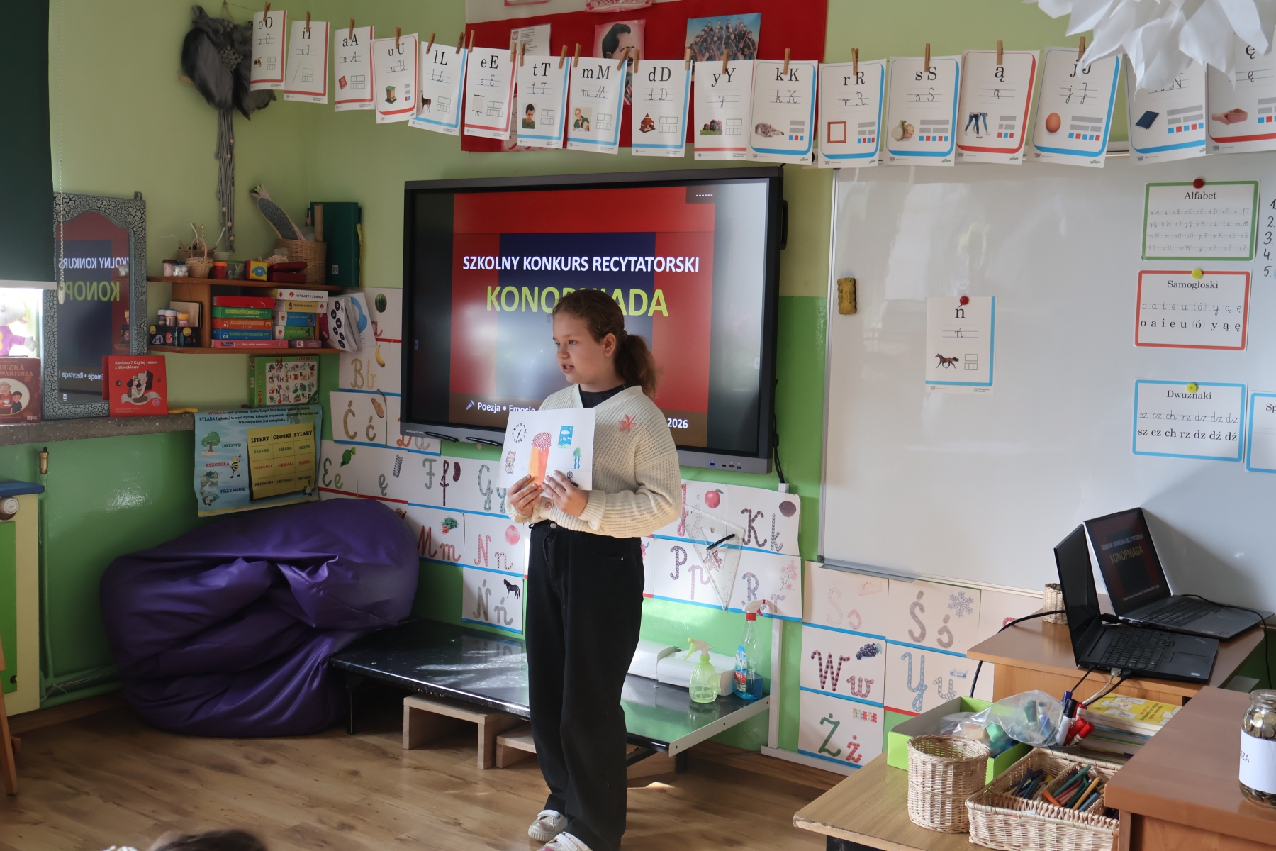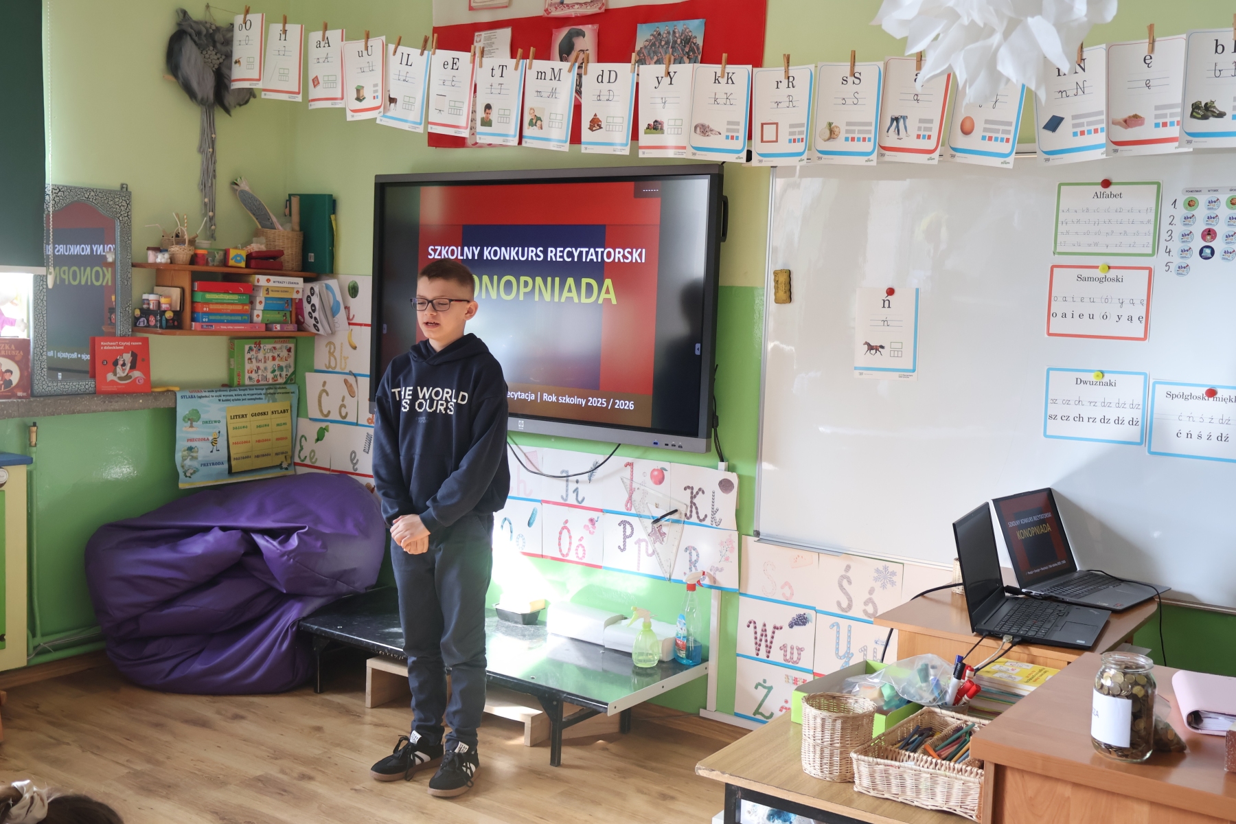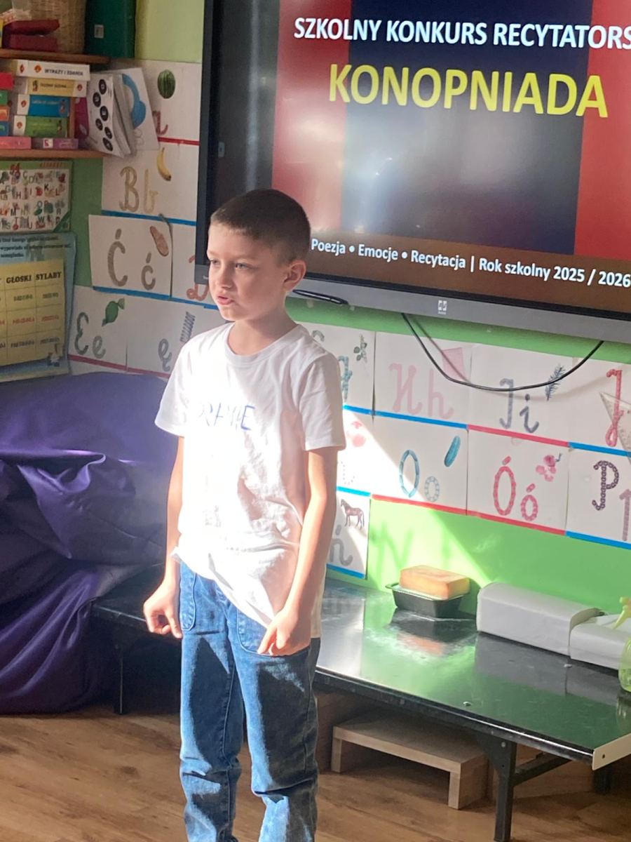W naszej szkole odbył się XIV Szkolny Konkurs Recytatorski „Konopniada”, który na stałe wpisał się w kalendarz szkolnych wydarzeń. Konkurs skierowany był do najmłodszych uczniów i przeprowadzony został w dwóch kategoriach wiekowych: klasa 0 oraz klasy I–III.