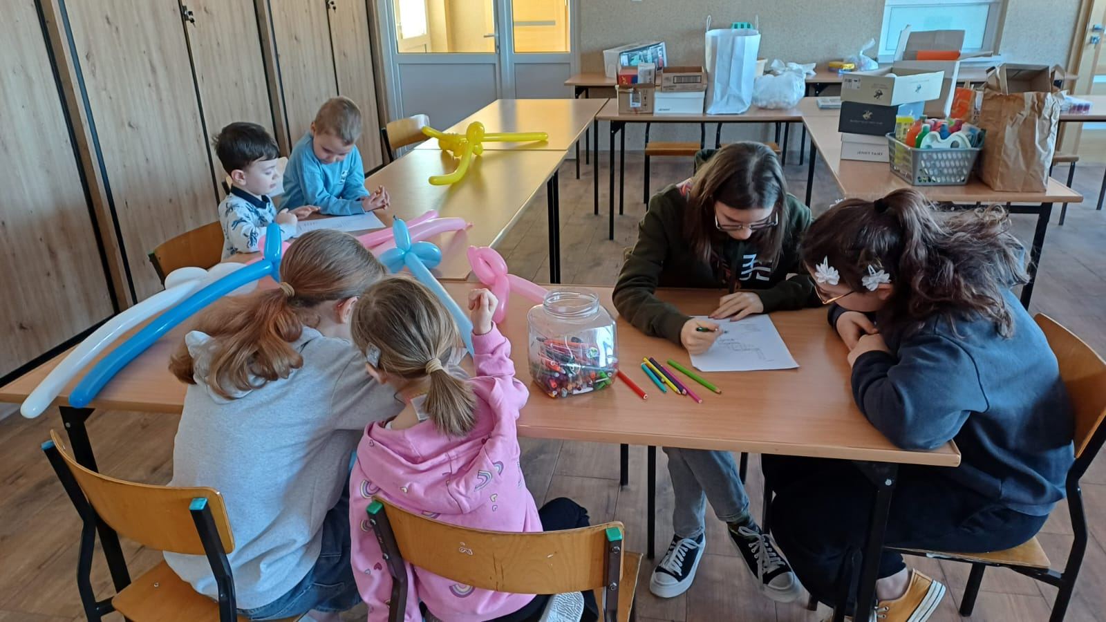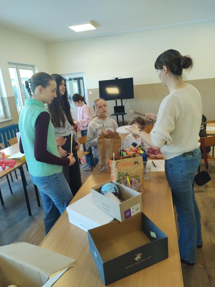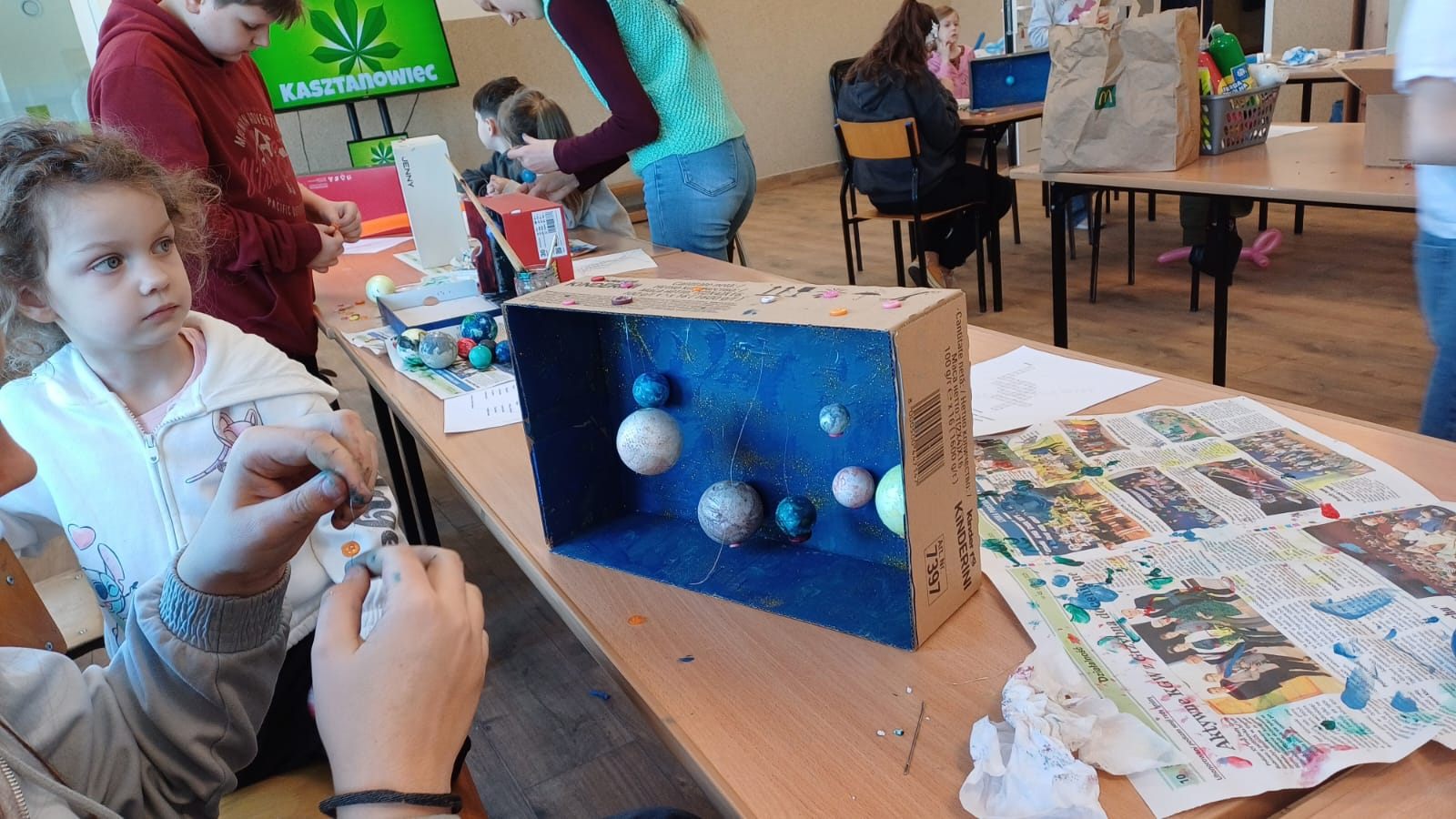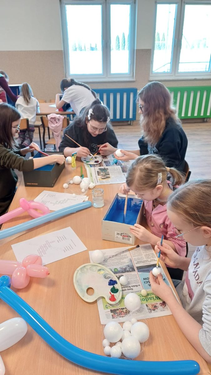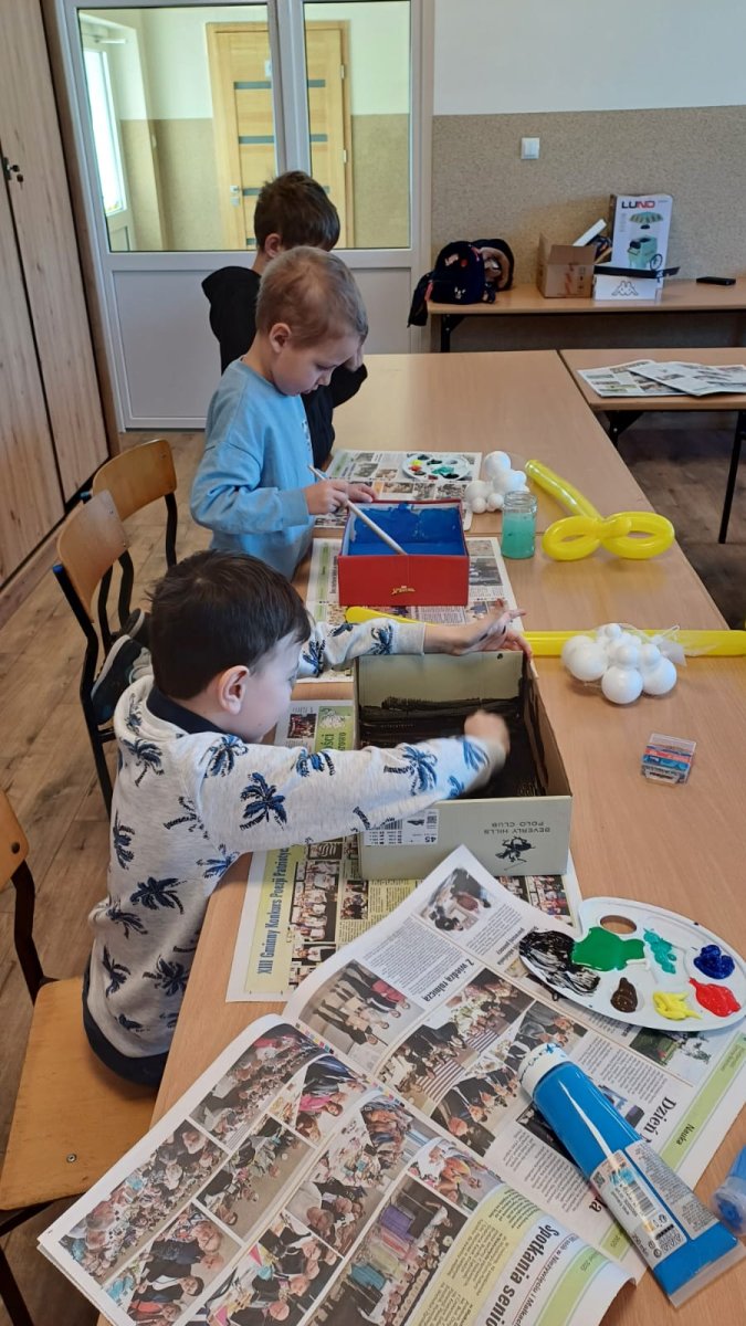 Zajęcia zostały zorganizowane dla dzieci przez Gminną Bibliotekę Publiczną  filia w Małkach wspólnie z opiekunem świetlicy środowiskowej panem Markiem Piotrowskim. Rozpoczęliśmy je od nauki robienia mieczy z podłużnych balonów. To nasza pierwsza przygoda z balonami i z pewnością nie ostatnia. Następnie przeszliśmy na świetlicę, na której został wyświetlony film edukacyjny dotyczący układu słonecznego. Po nim dzieci w parach rozwiązywały krzyżówkę tematyczną. Następnie zrobili zadanie manualne polegające na wykonaniu układu słonecznego w pudełku. Praca pochłonęła dużo czasu, ale efekt końcowy był bardzo zadowalający. Był także czas na naukę robienia popcornu oraz sprawdzenie, czy nadaje się on do konsumpcji.