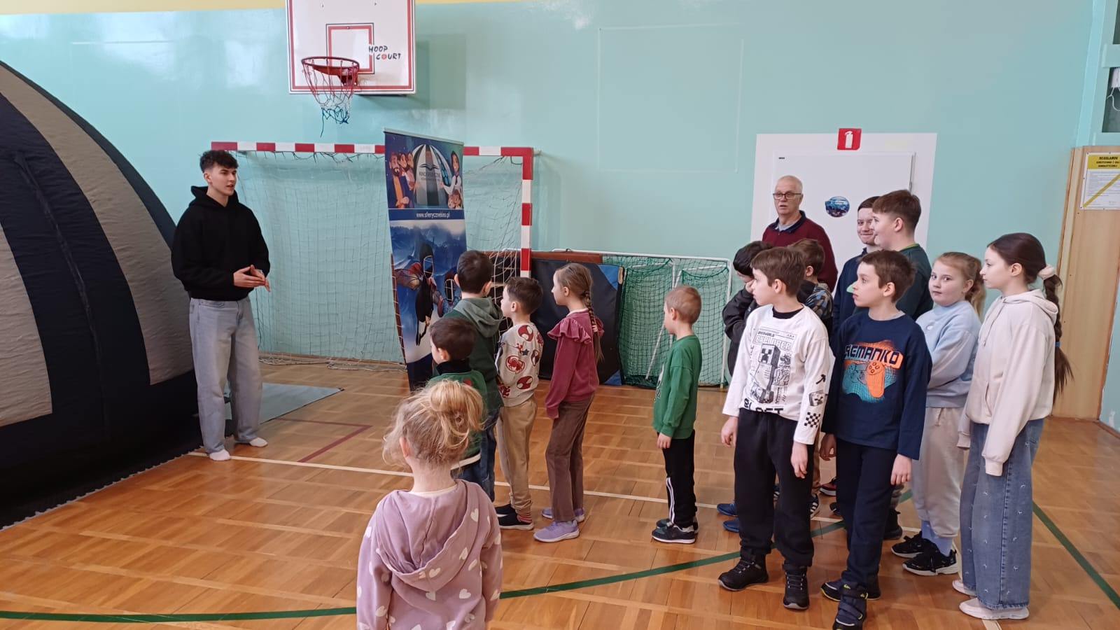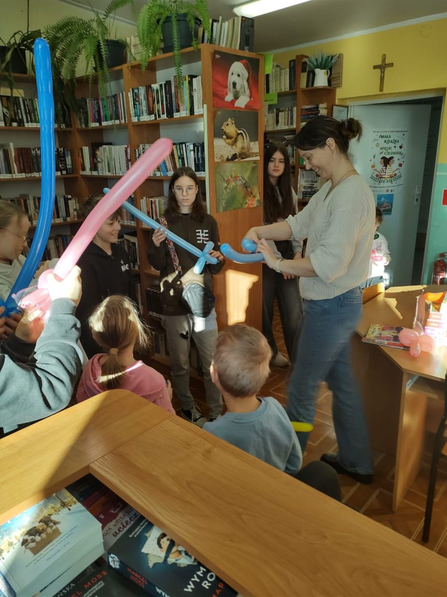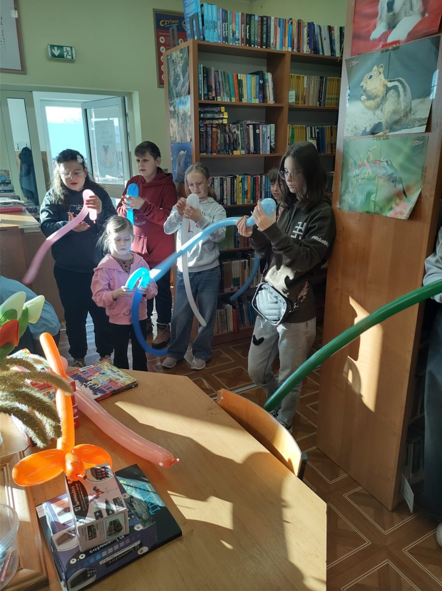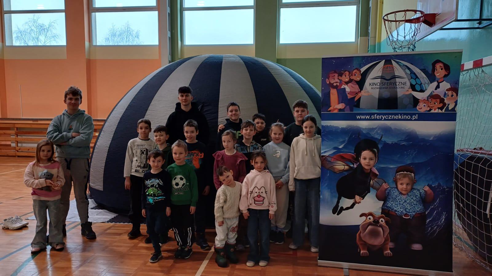 Czwartkowe zajęcia w bibliotece w Małkach również zaliczamy do udanych. Dzieci miały możliwość spędzenia czasu w wielkiej kuli zwanej kinem sferycznym. Do wyboru było kilka filmów edukacyjnych, jednak dziś wybór padł na seanse związane ze światłem oraz ziemią.  Pierwszy film opowiadał o Dziadku i Zoji, którzy badają naturę światła, podróżując teleskopem Hubble’a, aby odkryć przyczynę zniknięcia słońca. Film przybliżył dzieciom zagadnienia fizyki, natury światła, fal elektromagnetycznych oraz funkcjonowania  teleskopów. Natomiast drugi seans pt. „Zula Patrol – Lot na Ziemię” to animacja, która opowiada o kosmicznych bohaterach, którzy ścigają nikczemną Delirię. Cofnęła się ona w czasie do prehistorycznej Ziemi, by wyrzucać tam toksyczne śmieci. Patrol musi ją powstrzymać, poznając przy tym proces formowania się planety i ewolucję życia. Po udanych seansach filmowych przyszedł czas na manualne tworzenie. Dzieci wykonywały walentynkowe laurki, malowały z pomocą szablonu torby oraz uczyły się tworzyć balonowe arcydzieła.