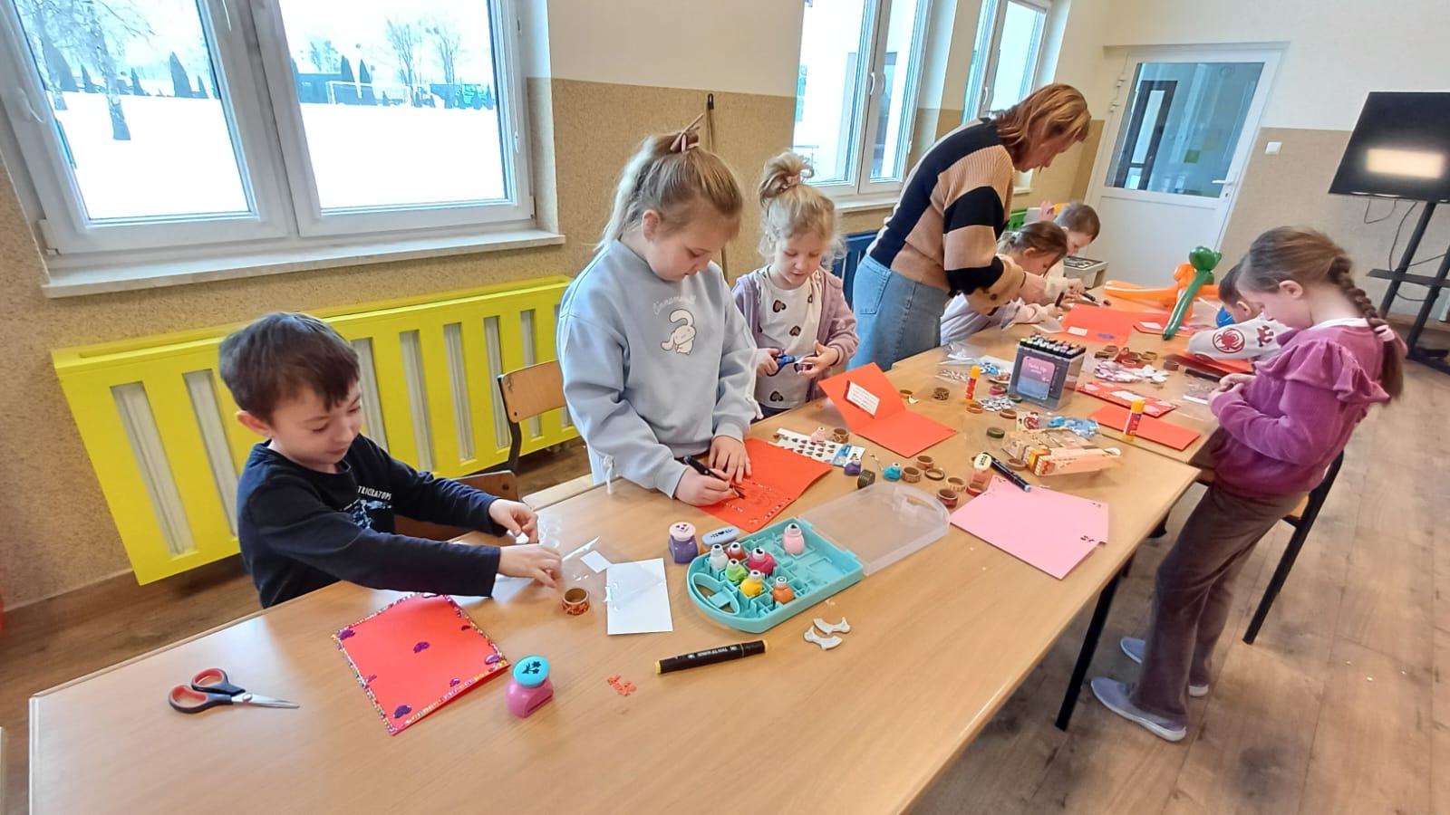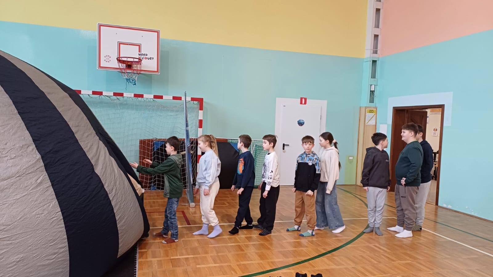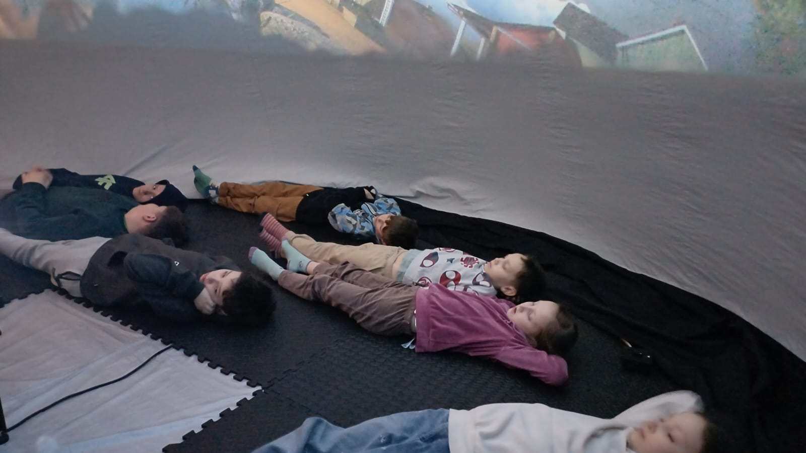Czwartkowe zajęcia w bibliotece w Małkach również zaliczamy do udanych. Dzieci miały możliwość spędzenia czasu w wielkiej kuli zwanej kinem sferycznym. Do wyboru było kilka filmów edukacyjnych, jednak dziś wybór padł na seanse związane ze światłem oraz ziemią.  Pierwszy film opowiadał o Dziadku i Zoji, którzy badają naturę światła, podróżując teleskopem Hubble’a, aby odkryć przyczynę zniknięcia słońca. Film przybliżył dzieciom zagadnienia fizyki, natury światła, fal elektromagnetycznych oraz funkcjonowania  teleskopów. Natomiast drugi seans pt. „Zula Patrol – Lot na Ziemię” to animacja, która opowiada o kosmicznych bohaterach, którzy ścigają nikczemną Delirię. Cofnęła się ona w czasie do prehistorycznej Ziemi, by wyrzucać tam toksyczne śmieci. Patrol musi ją powstrzymać, poznając przy tym proces formowania się planety i ewolucję życia. Po udanych seansach filmowych przyszedł czas na manualne tworzenie. Dzieci wykonywały walentynkowe laurki, malowały z pomocą szablonu torby oraz uczyły się tworzyć balonowe arcydzieła.