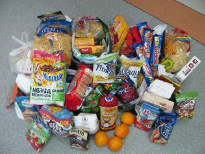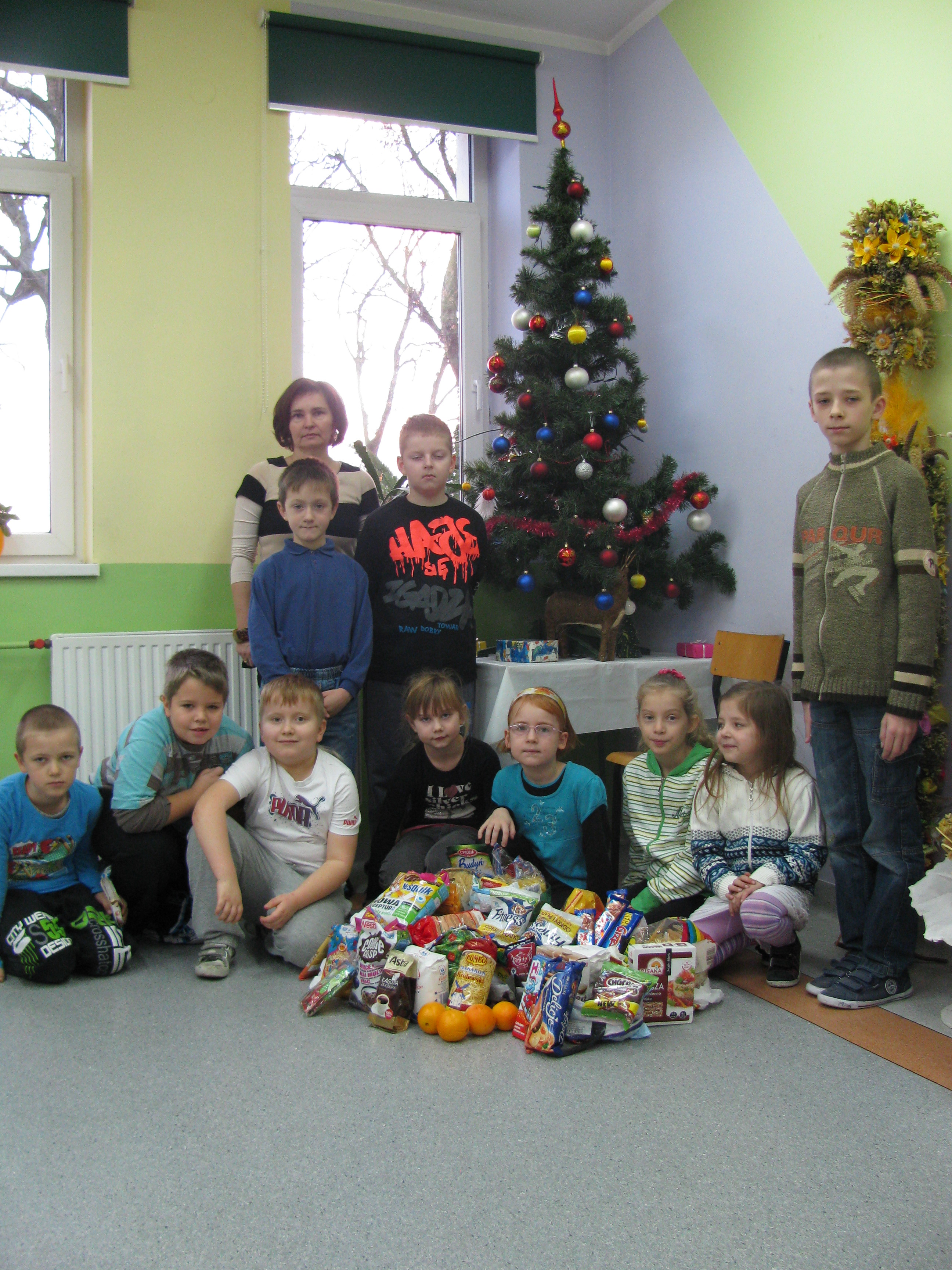 Kolejną kampanią była zbiórka żywności na paczki świąteczne. Akcja w naszej szkole trwała w okresie 2-6 XII 2013. Tu również nasi uczniowie wykazali się wielką dobroczynnością. Przynosili artykuły spożywcze: cukier, mąkę, makaron, olej, galaretki itp. oraz słodycze i owoce. Tu również, uzbierane podarunki, zostały przekazane do Zarządu Rejonowego PCK w Brodnicy, a darczyńcom wykonano pamiątkową fotografię.